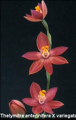 Thelymitra X dentata (longifolia X pulchella). Als Naturhybride in Neu-Seeland bekannt. Diese Kreuzung wurde von Dough McCrae in den 90er Jahren mit neuseeländischen Arten nachgemacht. Leider sind die Pflanzen wenig fertil. Nachkommen ergab jedoch eine Kreuzung mit Thelymitra nuda. T. X dentata blüht in Mitteleuropa erst im Mai oder Juni.